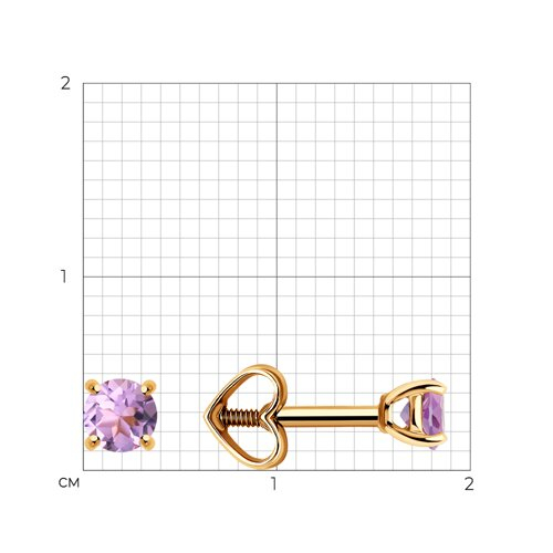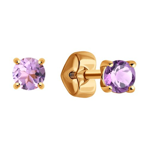 Серьги пусеты золотые пробы 585 с аметистом Diamant 51-322-01296-6