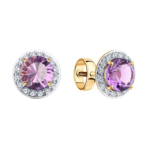 Серьги пусеты золотые пробы 585 с аметистом SOKOLOV 728968