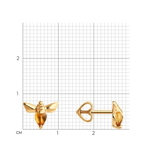 Серьги пусеты золотые пробы 585 с цитрином Diamant 51-322-02330-1