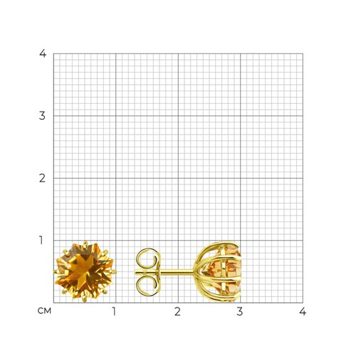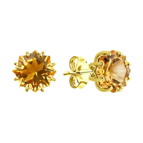 Серьги пусеты золотые пробы 585 с цитрином SOKOLOV 729206-2