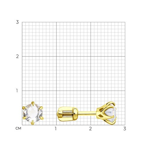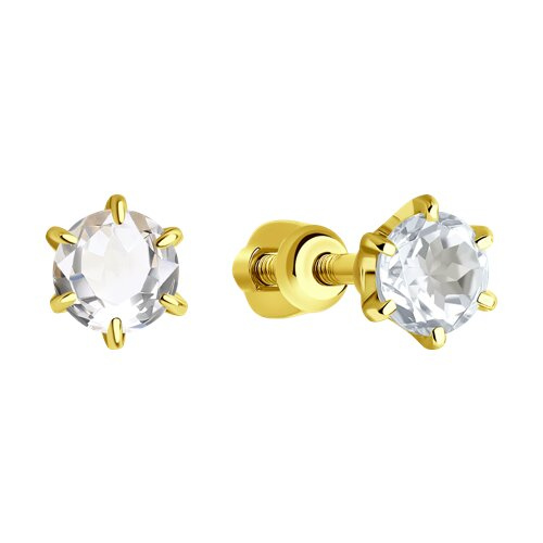 Серьги пусеты золотые пробы 585 с горным хрусталем SOKOLOV 728345-2