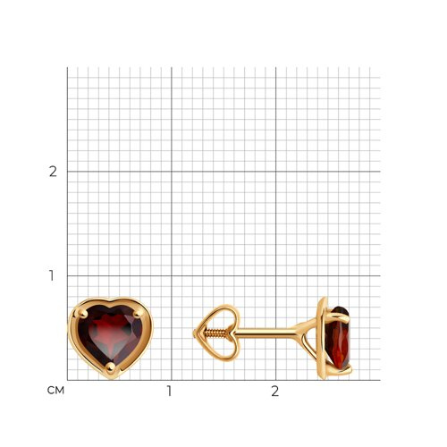 Серьги пусеты золотые пробы 585 с гранатом Diamant 51-322-01323-2