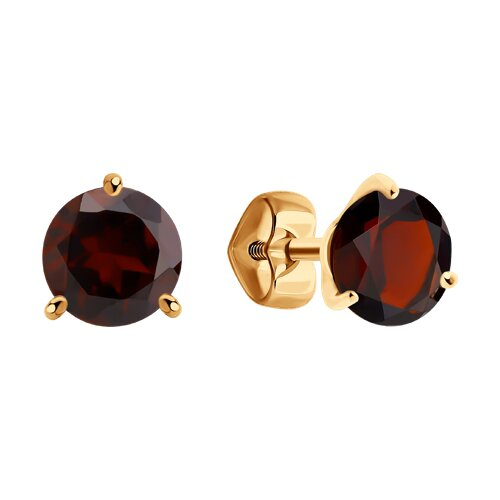 Серьги пусеты золотые пробы 585 с гранатом Diamant 51-322-01699-8