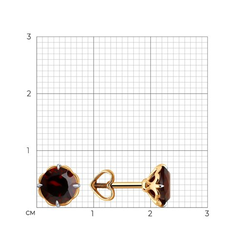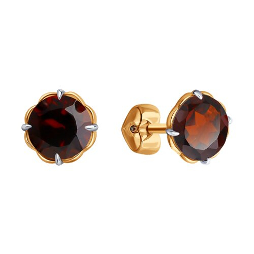 Серьги пусеты золотые пробы 585 с гранатом Diamant 51-322-01766-6