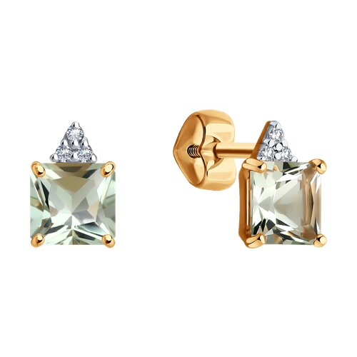 Серьги пусеты золотые пробы 585 с празиолитом Diamant 51-322-02163-1