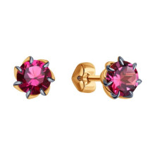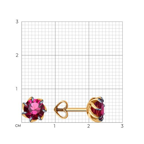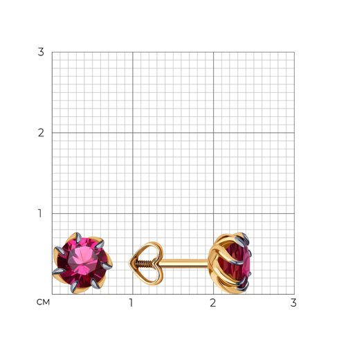 Серьги пусеты золотые пробы 585 с родолитом Diamant 51-322-01774-7