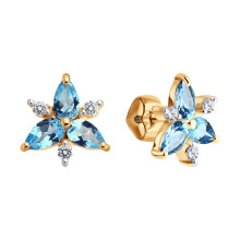 Серьги пусеты золотые пробы 585 с топазом Diamant 51-322-02329-1