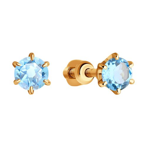 Серьги пусеты золотые пробы 585 с топазом SOKOLOV 728343