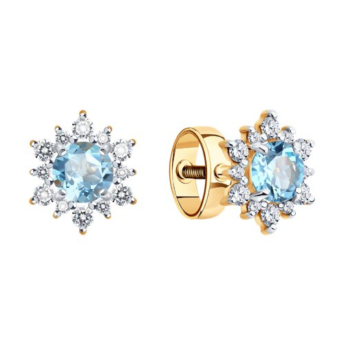 Серьги пусеты золотые пробы 585 с топазом SOKOLOV 729228