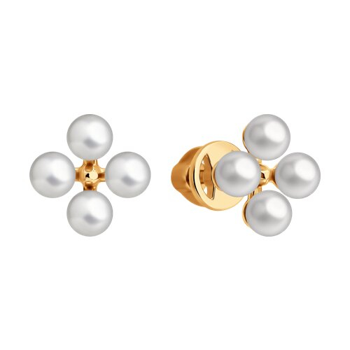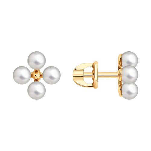Серьги пусеты золотые пробы 585 с жемчугом Diamant 51-322-02671-1