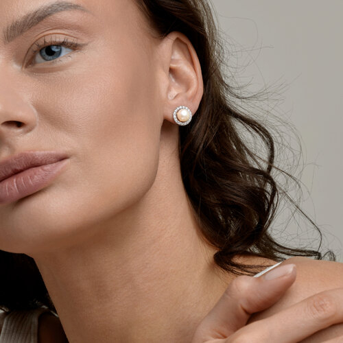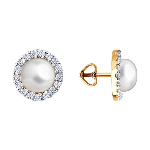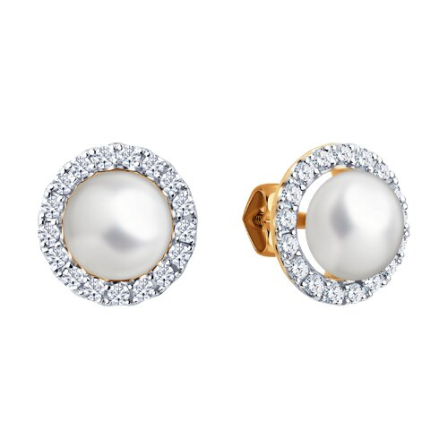 Серьги пусеты золотые пробы 585 с жемчугом Diamant 51-322-02825-2