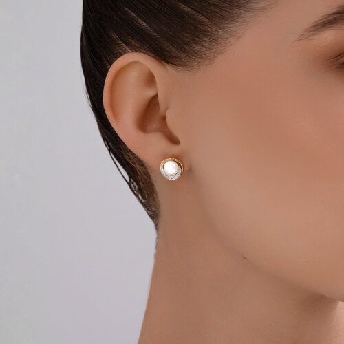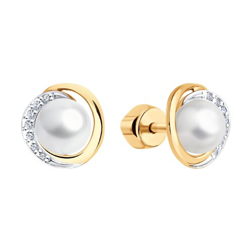 Серьги пусеты золотые пробы 585 с жемчугом SOKOLOV 792215