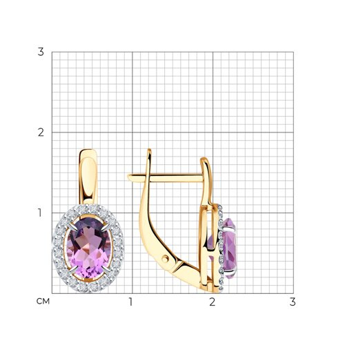 Серьги золотые пробы 585 с аметистом Diamant 51-320-02049-4