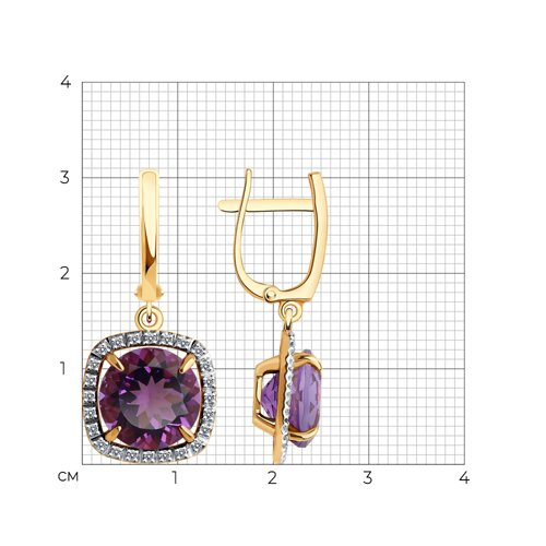 Серьги золотые пробы 585 с аметистом Diamant 51-321-02449-2