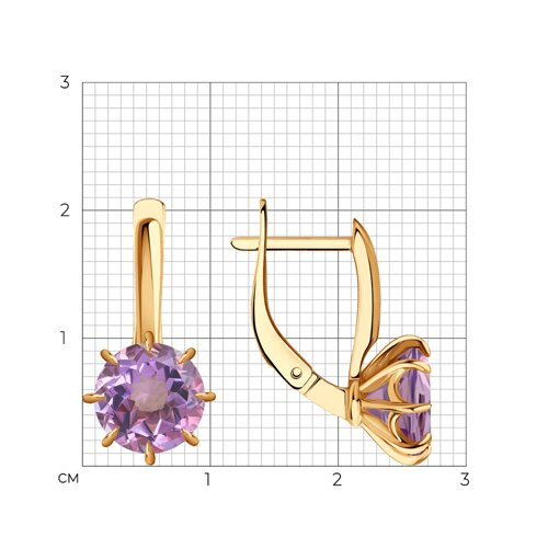 Серьги золотые пробы 585 с аметистом Diamant 51-320-01765-2