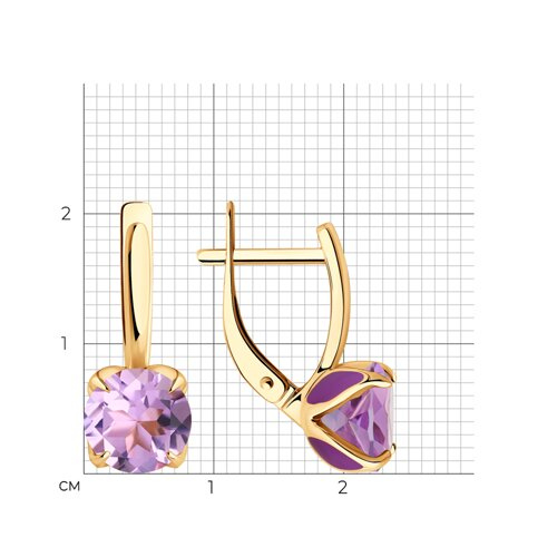 Серьги золотые пробы 585 с аметистом Diamant 51-320-02058-4