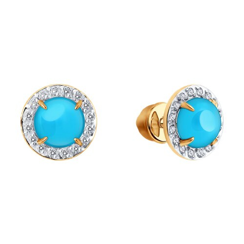 Серьги золотые пробы 585 с бирюзой SOKOLOV 729082
