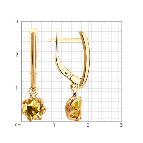 Серьги золотые пробы 585 с цитрином Diamant 51-321-01774-4