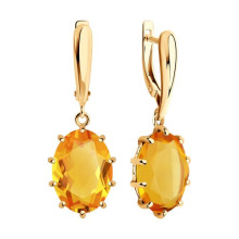 Серьги золотые пробы 585 с цитрином SOKOLOV 728829