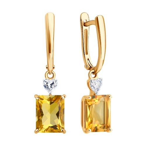 Серьги золотые пробы 585 с цитрином SOKOLOV 729341