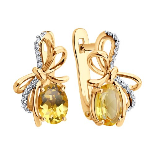 Серьги золотые пробы 585 с цитрином SOKOLOV 729384