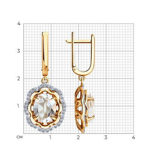 Серьги золотые пробы 585 с горным хрусталем Diamant 51-321-02510-3