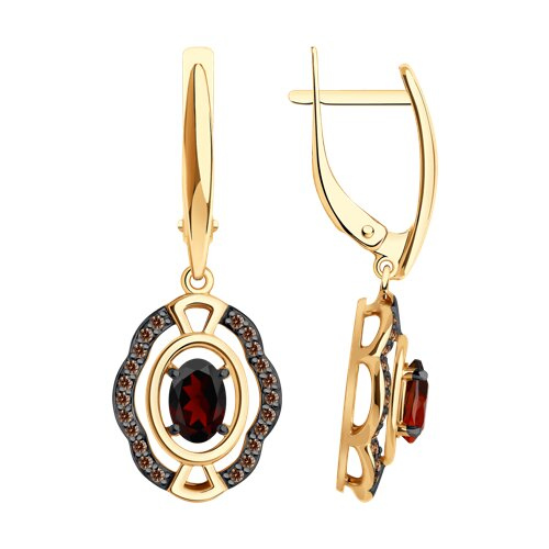 Серьги золотые пробы 585 с гранатом Diamant 51-321-02412-2