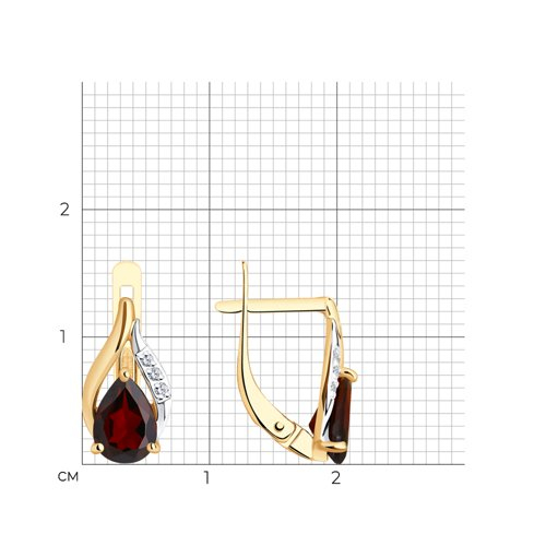Серьги золотые пробы 585 с гранатом Diamant 51-320-00985-2