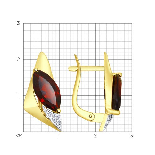 Серьги золотые пробы 585 с гранатом SOKOLOV 725147-2