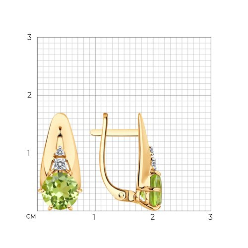 Серьги золотые пробы 585 с хризолитом SOKOLOV 724573