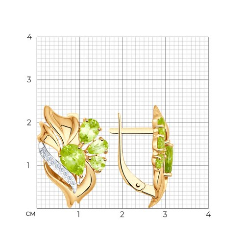 Серьги золотые пробы 585 с хризолитом SOKOLOV 725051