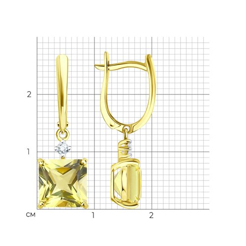 Серьги золотые пробы 585 с кварцем SOKOLOV 729355-2