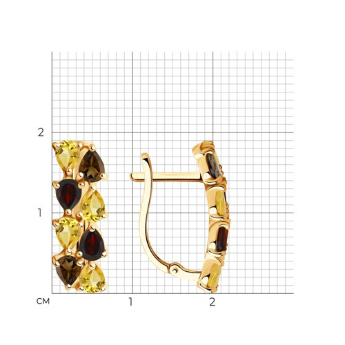 Серьги золотые пробы 585 с миксом камней SOKOLOV 726865