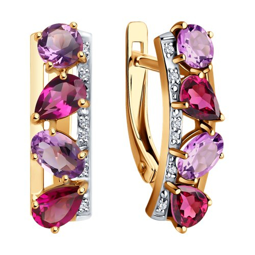Серьги золотые пробы 585 с миксом камней SOKOLOV 728775