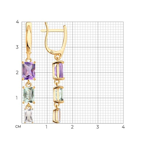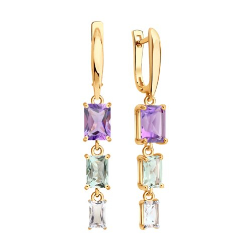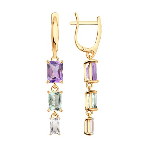 Серьги золотые пробы 585 с миксом камней SOKOLOV 729331