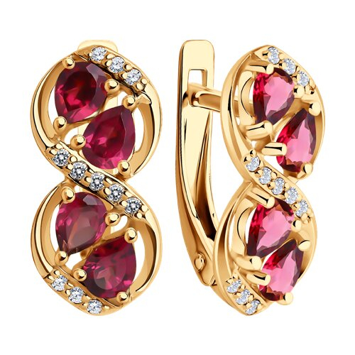 Серьги золотые пробы 585 с родолитом SOKOLOV 728461