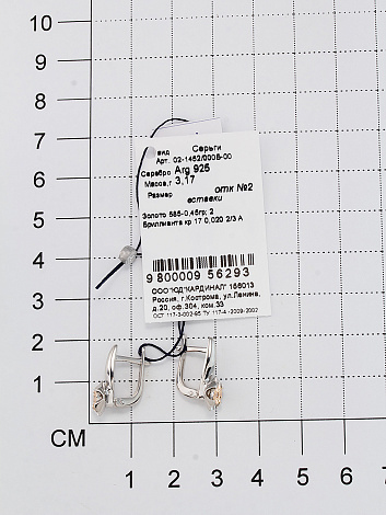 Серьги из серебра Алькор 02-1452/000Б-00