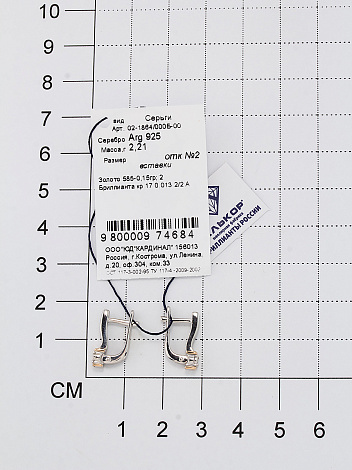 Серьги из серебра Алькор 02-1864/000Б-00