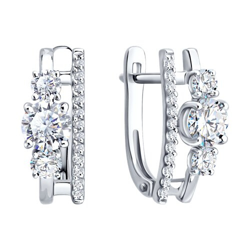 Серьги из белого золота с фианитами SOKOLOV 0200990-3