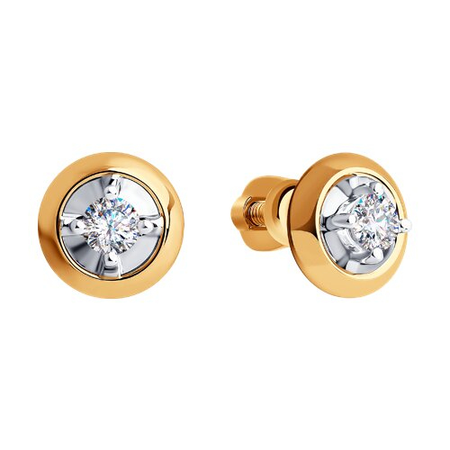 Серьги из комбинированного золота с фианитами SOKOLOV 028690