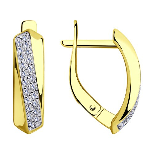 Серьги из желтого золота с фианитами Diamant 53-120-00424-1