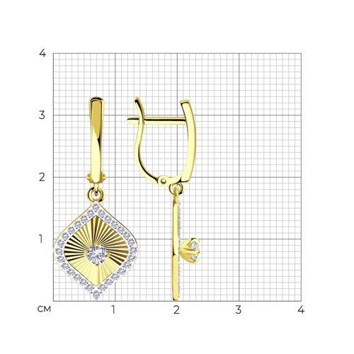 Серьги из желтого золота с фианитами Diamant 53-121-01240-1