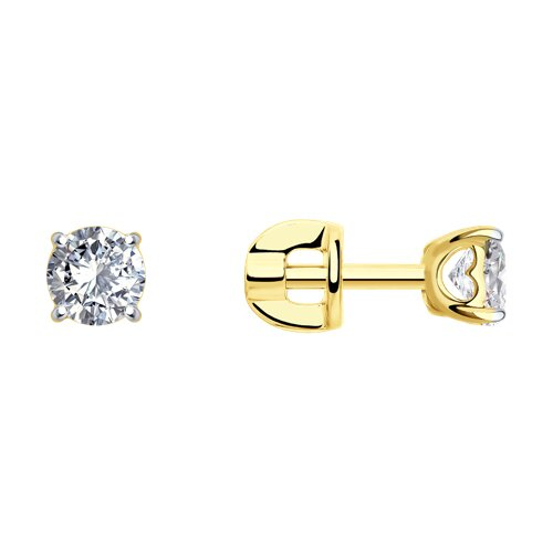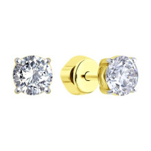 Серьги-пусеты из желтого золота с фианитами SOKOLOV 026935-2