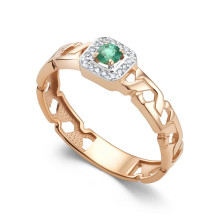 Кольца АЛЬКОР из красного золота 585 с изумрудом